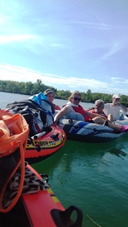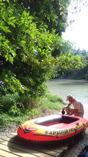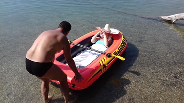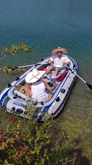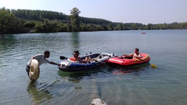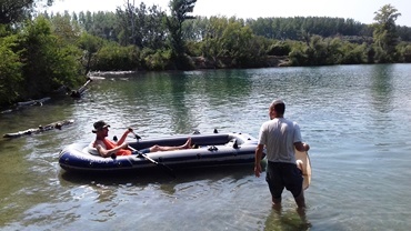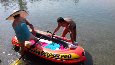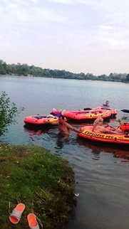 Vedeli ste, že jemne tečúca voda, ak ste na nafukovacom člne, má liečivý účinok? Musia byť však splnené ešte ďalšie podmienky, napríklad dohoda so živlami a pravidlá správania sa liečeného človeka v člne, napr. mlčanie :-). Ale o tom si povieme až na mieste. Takýchto vyhovujúcich člnov sme zakúpili 7 ks (pre skupinku, dvojice, aj rodiča s dieťaťom). Máme nakúpené nadnášacie vesty, aj detské, aj pre psov a pár sombrer pre tých, čo sa schovávajú pred slnkom.